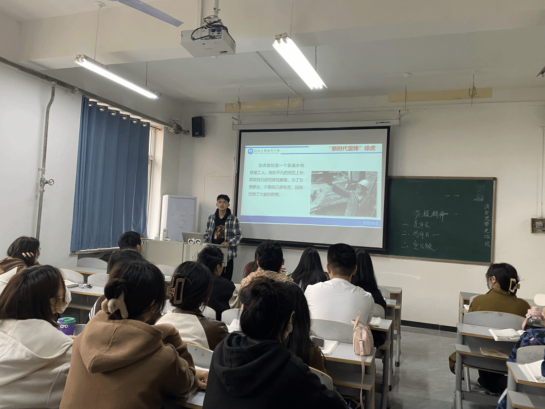 2022年4月27日,习近平总书记在致首届大国工匠交流大会的贺信中强调,技术工人队伍是支撑中国制造、中国创造的重要力量。我国工人阶级和广大劳动群众要大力弘扬劳模精神、劳动精神、工匠精神,适应当今世界科技革命和产业变革的需要。为充分发挥劳动模范的示范引领作用,引导新时代大学生弘扬和传承劳模精神,激励学生坚定理想信念、树立正确劳动观,积极营造劳动光荣的社会氛围和精益求精的敬业风气,艺术与传媒学院思政教研室于4月11日在行政楼509开展了“讲好劳模故事,弘扬劳模精神”先进事迹我来讲活动。