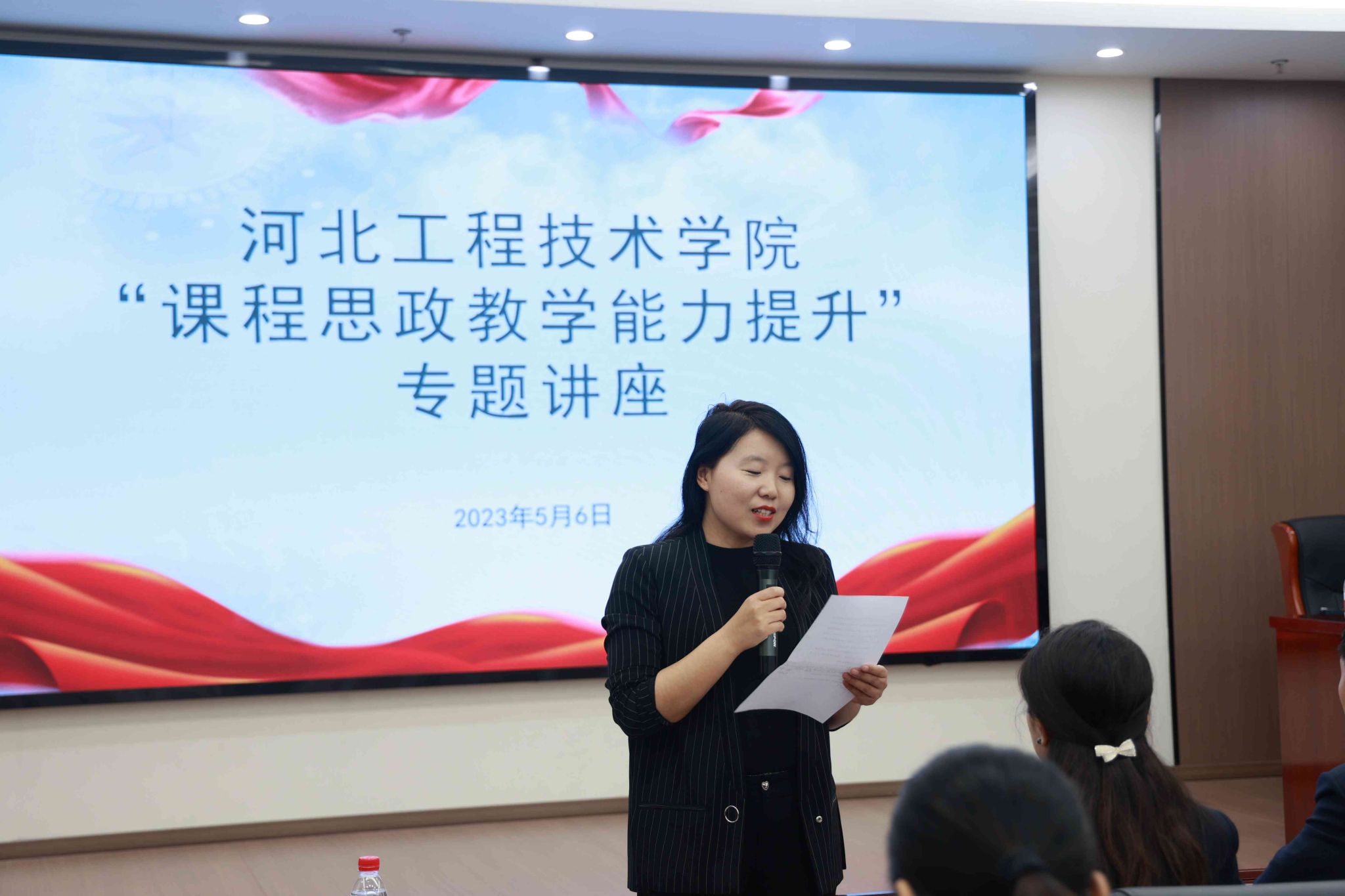 为推动我校课程思政化建设的发展,充分发挥课程育人的作用,推进全员、全方位、全过程育人,落实立德树人根本任务,推动思政课程与课程思政协同前行、相得益彰,构筑大思政育人的新格局,我校5月6日邀请河北经贸大学教学评估与教师教学发展中心主任赵霞做“课程思政教学能力提升”专题讲座。