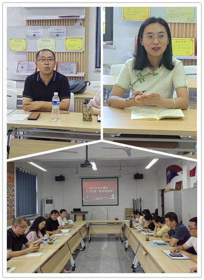 三寸笔头,三尺讲台系国运;一颗丹心,一生秉烛铸民魂。习近平总书记强调:“一个人遇到好老师是人生的幸运,一个学校拥有好老师是学校的光荣,一个民族源源不断涌现出一批又一批好老师则是民族的希望。”参会教师在座谈会后纷纷表示要牢记习近平总书记的殷殷嘱托,以教育家为榜样,大力弘扬教育家精神,秉持“躬耕教坛、强国有我”的志向和抱负,培养一代又一代堪当民族复兴大任的时代新人。