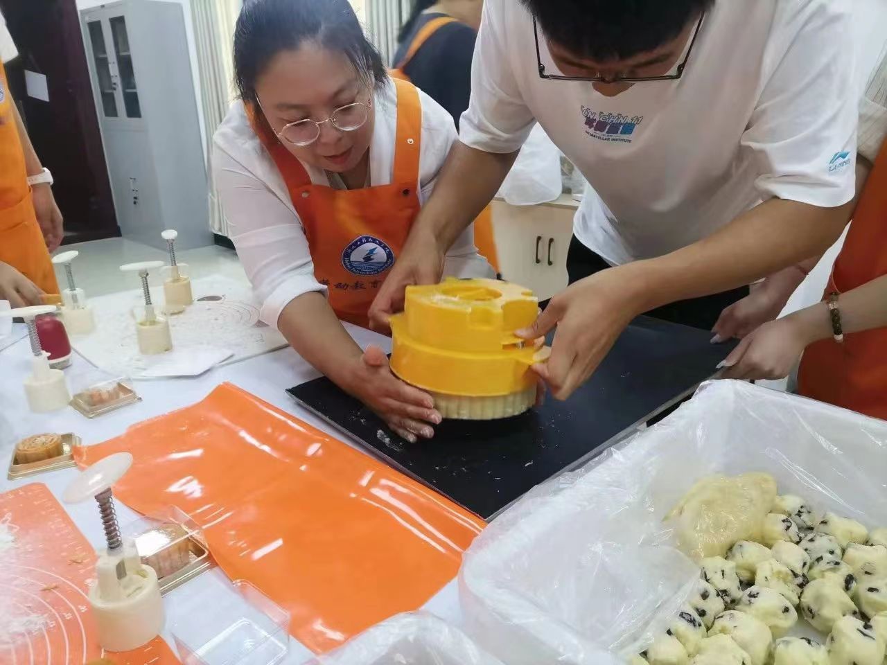 活动中,同学们在老师的指导和鼓励下,自己动手制作月饼。生动有趣的月饼形状,寄托着对家人、对学校、对未来自己的美好愿望与期许。活动现场气氛愉悦,同学们在月饼制作完成后将月饼打包,并拍照留念,记录下此刻的心情,寄托着自己的思念。