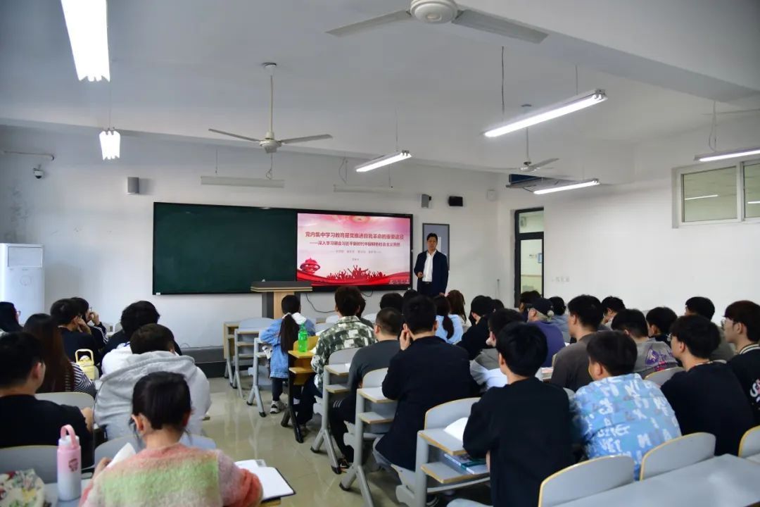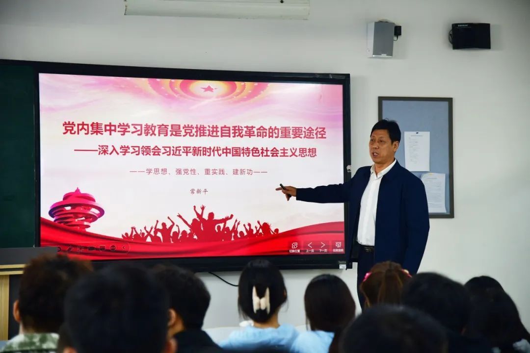 在课上,常书记首先从习近平新时代中国特色社会主义思想的发展历程入手,紧紧围绕“扎实抓好主题教育,为奋进新征程凝心聚力”、“科学把握习近平新时代中国特色社会主义思想”以及“深刻领悟‘两个确立’的决定性意义”三部分,深刻阐述了主题教育和自我革命在党的发展历史上的重要作用,同时为学生深刻领悟社会主义建设、改革及中华民族伟大复兴提供有力指导。