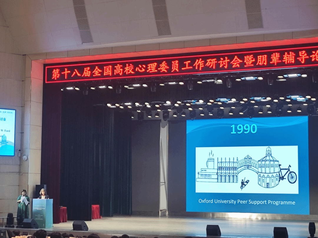 大会第二天(11月2日),我们参加了大会开幕式及各主题报告,其中北京大学苏彦捷教授阐述了关系中的理解和支持,中国科学技术大学孔燕教授讲解了家教社协同背景下学校心理委员的担当,同时提出相应的可行性措施,让我们对于朋辈心理工作有了更深的了解。邓明昱教授介绍了美国大学心理健康的辅导,牛津大学Anne. W. Ford教授讲解了牛津大学的朋辈支持计划,让我们对于国外的了解有了一些补充,开拓了我们对于朋辈心理工作的认识,受益匪浅。