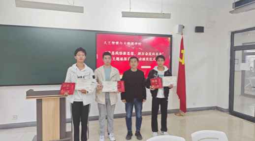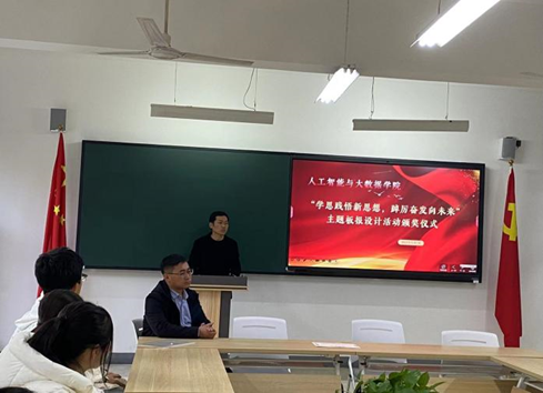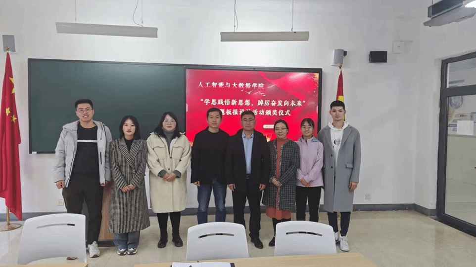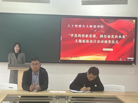 11月7日,在学院会议室举行了“学思践悟新思想,踔厉奋发向未来”主题板报设计活动的总结大会暨颁奖仪式,参与本次活动的有人工智能与大数据学院党总支书记、学管副院长尹钧,马克思主义学院副院长苗正超,人工智能与大数据学院学管办主任、思政教研室副主任杨家腾以及获奖班级辅导员、学生代表,本次活动由人工智能与大数据学院思政教研室主任李亚鑫主持。