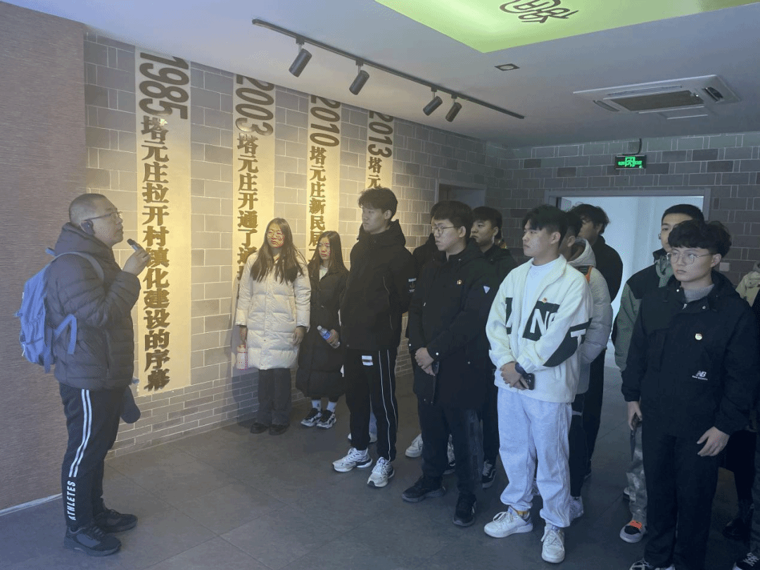 研学师生首先参观了塔元庄村容村貌、村民服务中心、村民中心文化长廊,实地体验了塔元庄村欣欣向荣的发展面貌。参观塔元庄村史陈列室,跟随习近平总书记的足迹,回顾新农村建设,提振农业发展信心,加速推动知识转变为社会发展的生产力;观看塔元庄村发展纪录片,重温共产党人的初心和使命,深刻感受习近平总书记矢志不渝的理想追求和家国情怀、实干作风和改革精神。