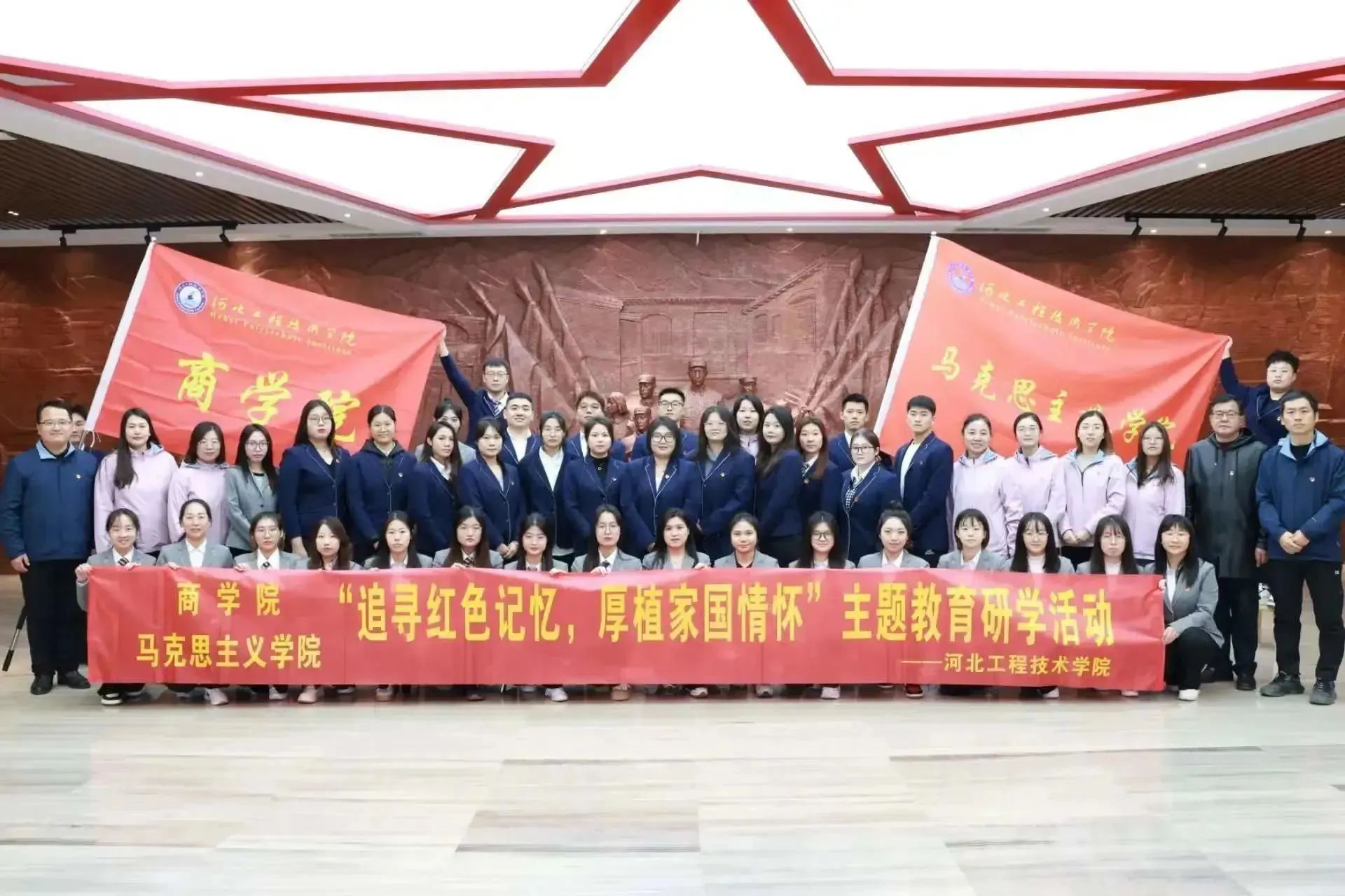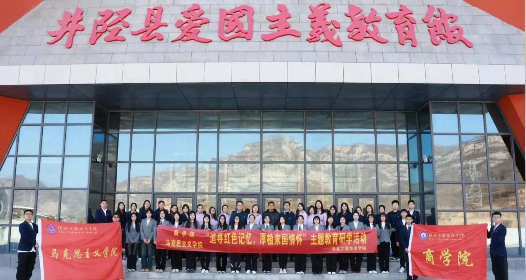 为深入学习贯彻习近平新时代中国特色社会主义思想,提升党员师生党性修养,推动主题教育工作走深走实。11月19日,马克思主义学院与商学院在井陉县红色文化教育基地开展“追寻红色记忆,厚植家国情怀”主题研学活动。参与活动的有马克思主义学院执行院长于多珠,商学院党总支书记、副院长刘茜,马克思主义学院副院长苗正超及部分专任教师、辅导员、学生代表。