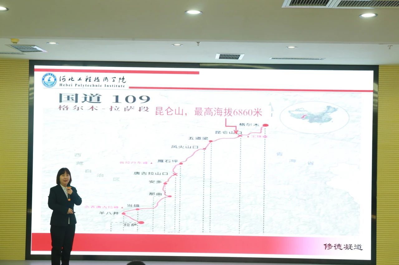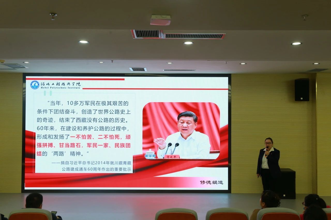 本次教学展示活动主题为“凿艰越险 ‘两路’丰碑”。土木工程学院白硕老师从公路的基本组成、公路行政分级、川藏和青藏公路在建造中的难题等三个方面详细展开,其中蕴含的不怕困难、生态环保、科技创新等思政元素扣动心弦。来自马克思主义学院,同时也是土木工程学院思政教研室成员的李晓丹老师对习近平总书记指出的“一不怕苦、二不怕死、顽强拼搏、甘当路石、军民一家、民族团结”的“两路”精神核心内涵进行了生动讲解。本次教学展示在全体同学对“两路”精神的大声宣读中结束。