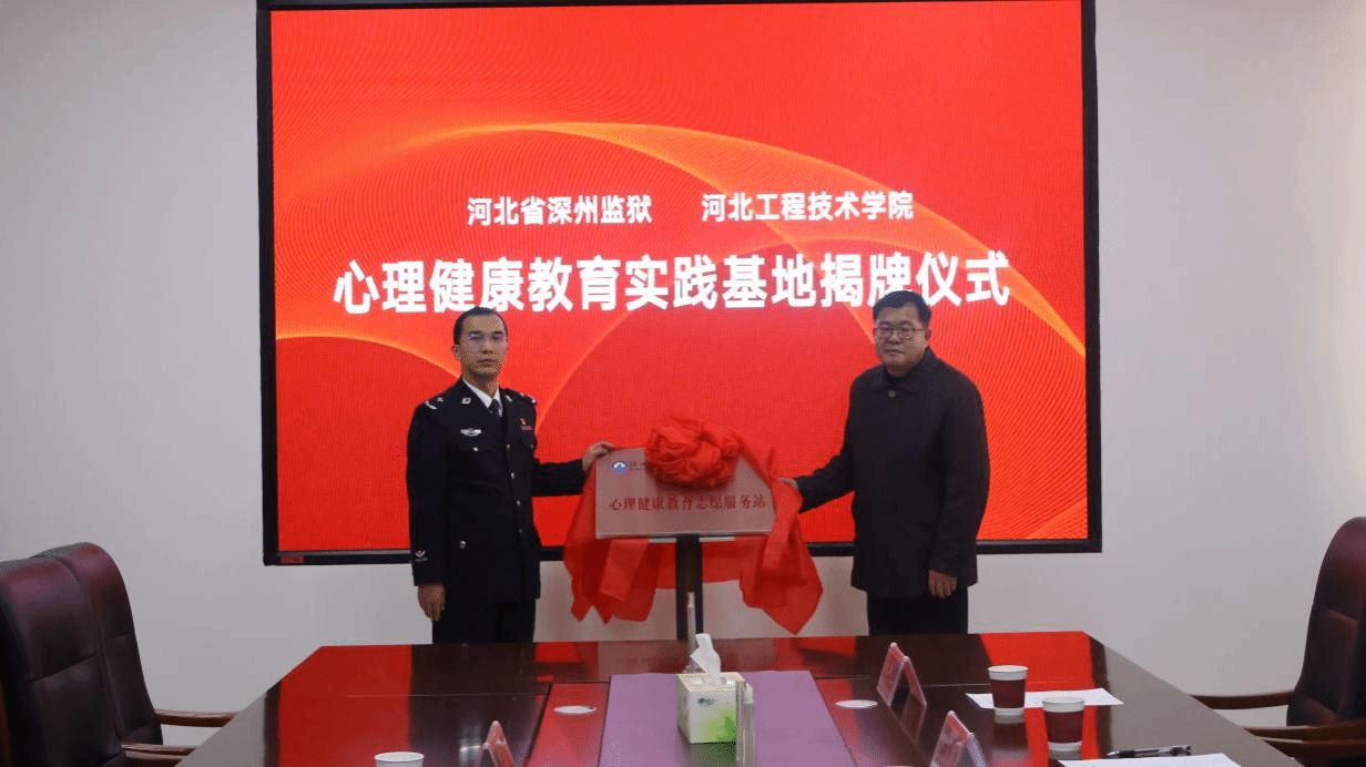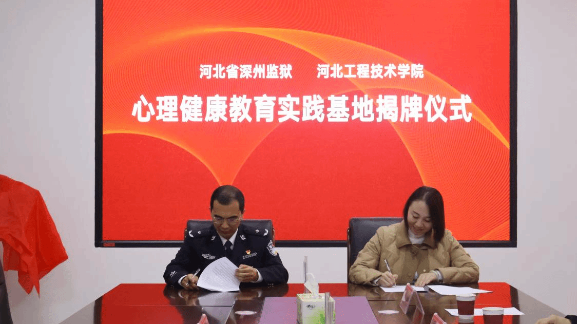 为进一步提升学校的社会服务功能和影响力,我校与河北省深州监狱同创共建,积极合作,于2023年12月7日,在监狱指挥中心举办了心理健康教育实践基地签约暨揭牌仪式。参加仪式的有河北省深州监狱党委副书记、政委李利锋,党委委员、总会计师张子良,我校2004级优秀校友、深州监狱纪委副书记郑宏伟,我校马克思主义学院执行院长于多珠,学生工作部部长郭静,马克思主义学院副院长苗正超,大学生心理健康教育指导中心主任李佳丽和马克思主义学院教师杨小东。