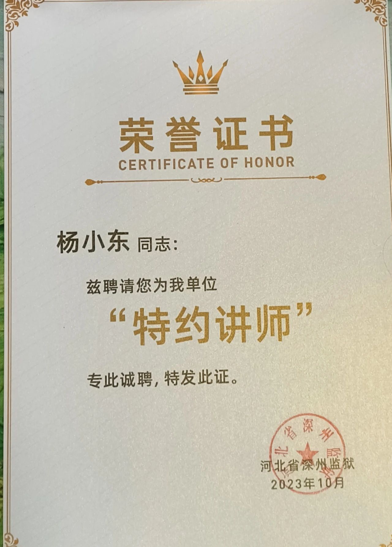 2023年12月7日下午,我校与河北省深州监狱成功举办签约暨揭牌仪式,双方在思想政治教育和心理健康教育方面达成合作意向。揭牌仪式后,马克思主义学院教师杨小东进行了公益讲座,并被深州监狱聘为特约讲师。