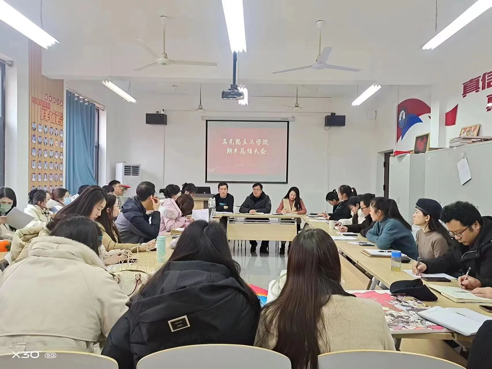 弦歌不辍,巩固高品质思政建设成就;思行并进,激荡高质量教育发展活力。2023年12月29日下午,马克思主义学院全体教师在会议室召开2023-2024学年第一学期期末总结大会。马克思主义学院执行院长于多珠,党支部书记、副院长李洁,副院长苗正超及全体教师参加会议。会议由副院长李洁主持。