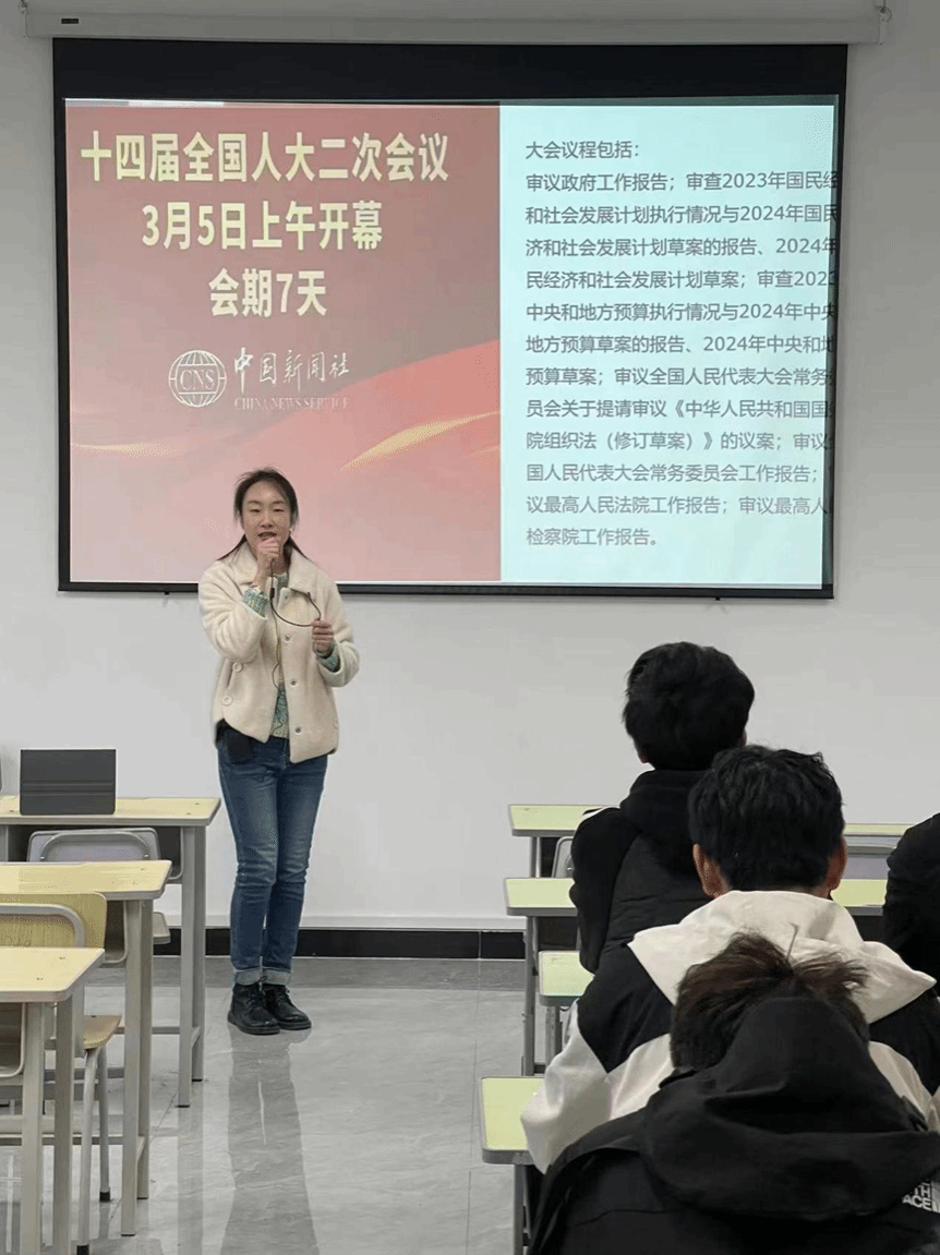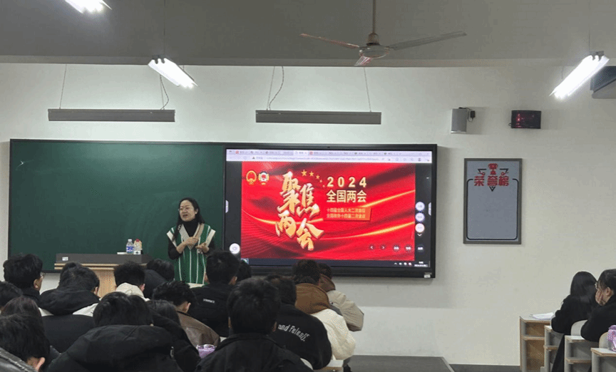 为引导青年学生切身感受党和国家事业所取得的重大成就,提升对党和国家的认同感、幸福感和获得感,强化使命担当,马克思主义学院开展了以"两会精神进课堂”为主题的思政教学活动。