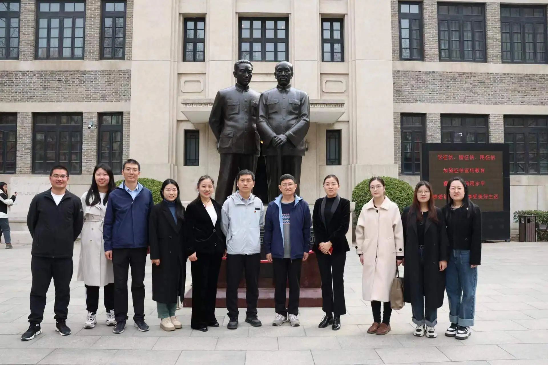 抵达河北钱币博物馆后,映入眼帘的是高大的铜像——他们是中国人民银行的创立者董必武和第一任中国人民银行行长南汉宸,他们为中国货币体系的创立立下了汗马功劳。马克思主义学院思政课教师韩策老师从成立历史、革命故事、货币发行等方面对博物馆进行了详细介绍,师生们在铜像前合影留念。