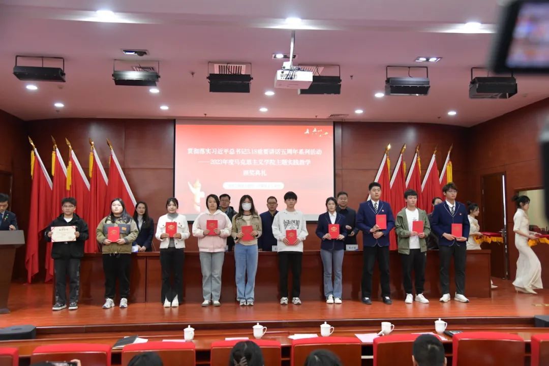 随后,马克思主义学院办公室主任、劳动教育中心主任唐路红宣读了2023年度主题实践教学作品成果奖、优秀指导教师奖及马克思主义学院首届“六要”好老师表彰决定,对2023年度思政实践教学作品成果获奖的个人和团队、优秀指导教师和“六要”好老师进行了年度表彰颁奖。
