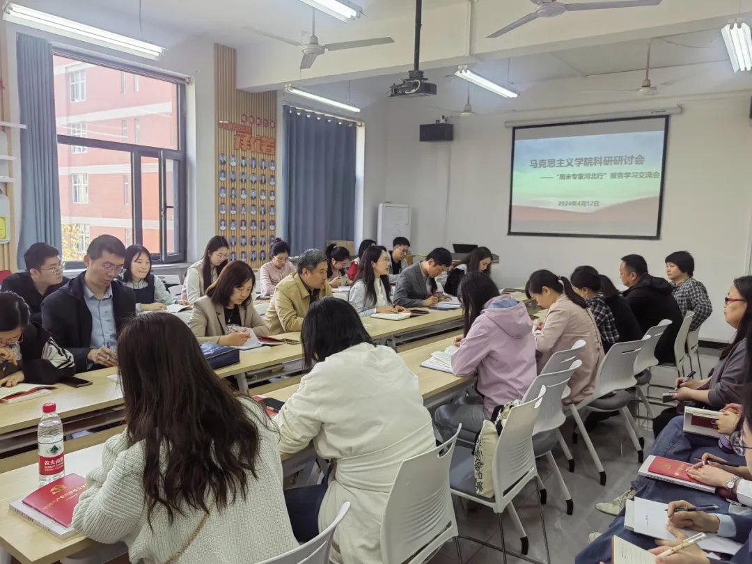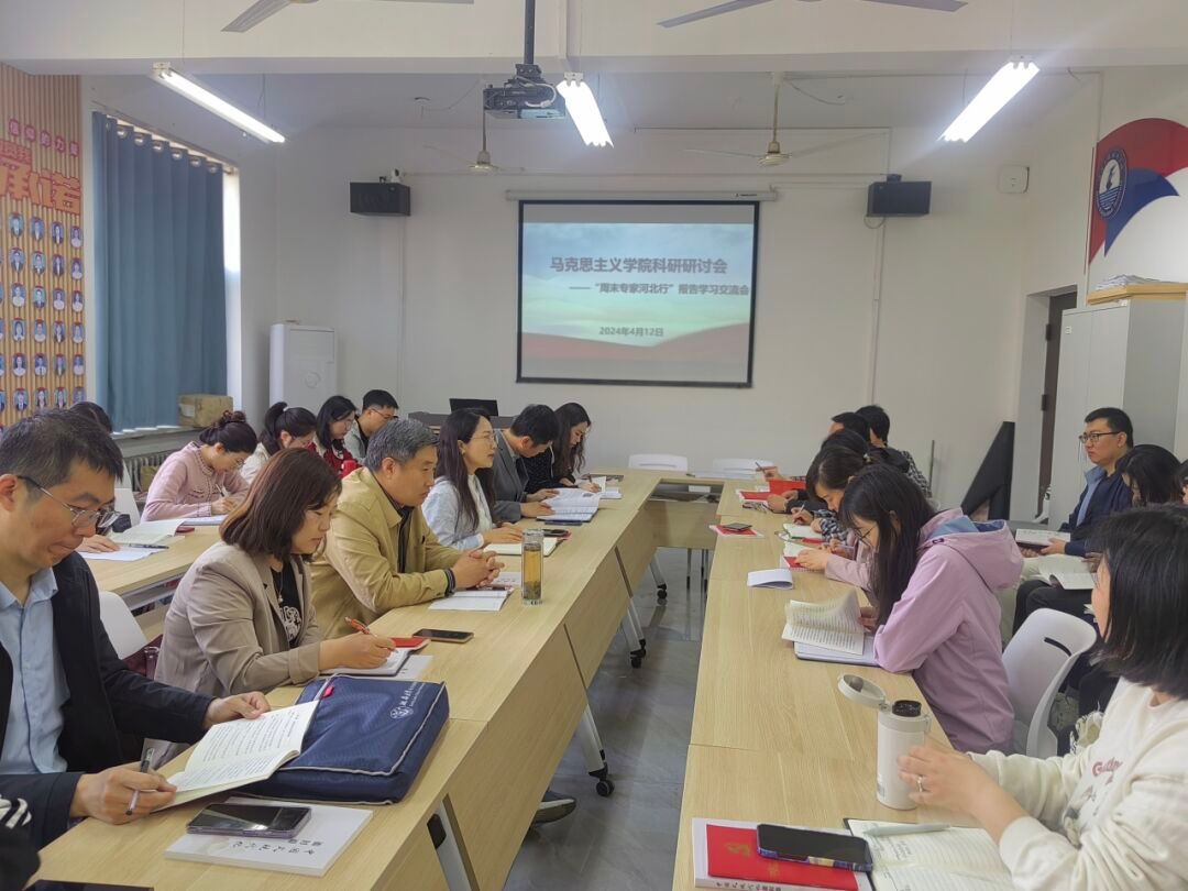 根据河北省教育厅《“周末专家河北行”活动工作推进方案》和学校相关安排,马克思主义学院近日开展了“周末专家河北行”系列活动,特邀天津商业大学齐霁教授做了科研相关报告。会后,马克思主义学院趁热打铁,组织全体教师继续深入学习报告内容,在明德楼会议室召开讲座收获分享会。会议由党支部书记、副院长李洁主持。